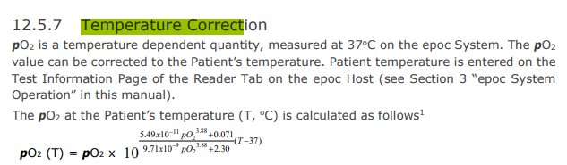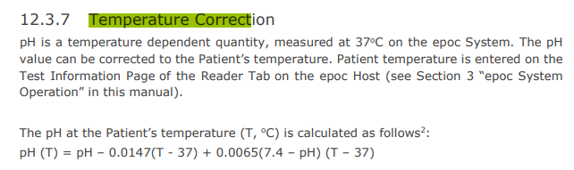 Good morning, does the iSTAT manual have anything to say about temp correction? I use the EPOC manual for my temp calculations on all specimen types for gases regardless of age throughout the hospital. We don't specify how the temp is taken or adjust for that. Thanks, Jake image.pngimage.pngimage.png