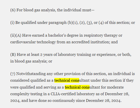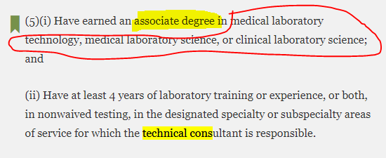 EDIT: If you follow the link to the rule and look under the section § 493.1411 Standard; Technical consultant qualifications. the language reads as follows: