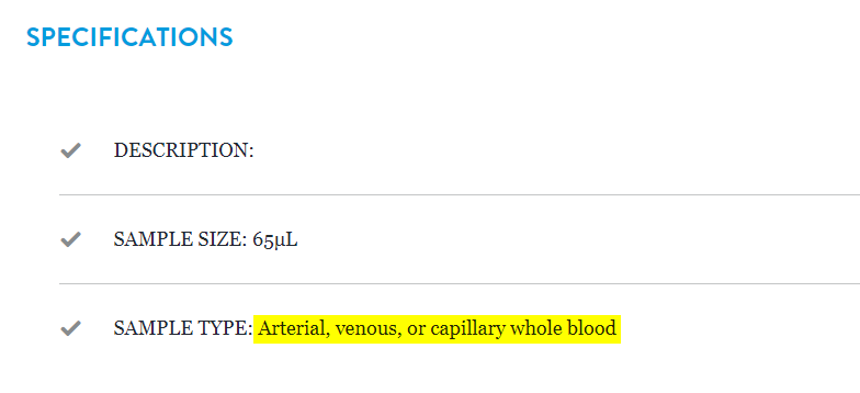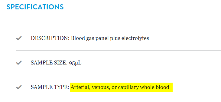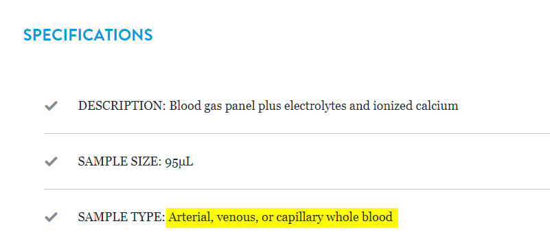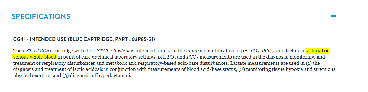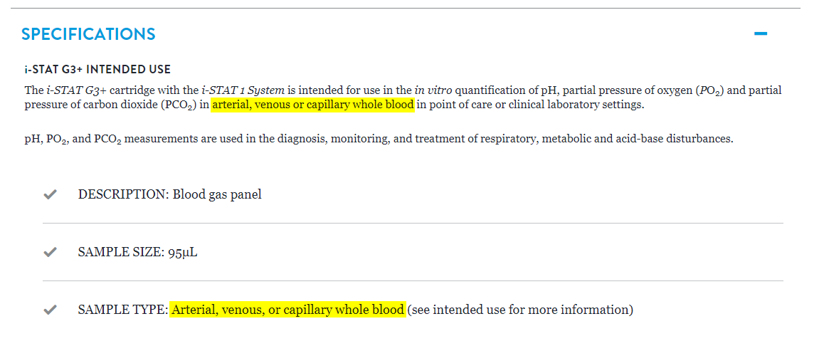 The other cartridge types indicate capillary whole blood as being acceptable in addition to arterial and venous whole blood. None mentioned cord blood as an acceptable sample.