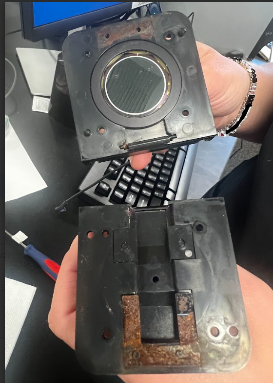 We have been having issues with one of our Avox machines frequently failing QC. We cleaned the lens, eventually switched QC manufacturers and still no luck. Calibration is even failing. We took it apart the other day and I was shocked to see lots of green metallic corrosion inside of it on the casing (none on the electronic board). Then we opened up the lens and saw rust all over the hinge. We took apart a second machine to see if they were all potentially like this and found actual moisture in between the black casing the lens is housed in. Anyone have any experience with this? Tech Support couldn't tell me if it was normal or not. See pics image002 (1).pngimage001.png