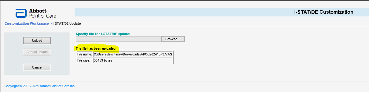 I just updated the latest CLEW (A48) and we are using RALS, everything works fine except for the part where I could not update the e-vas. I was able to upload the latest e-vas image.png but when I go back to Customization Workspace, it is still the old e-vas file. image.pngI have to uncheck the Use eVAS box in order for us to run a QC and just manually compare the ranges from the sheet. I already called the Abbott i-stat customer service and they said they will get back to me. Anybody else having the same issue?