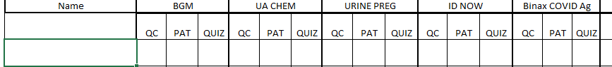 Are you indicating that your initial training, and then all competency assessments are tracked for an employee/testing personnel using one form for each (for the year), and all of the POC tests are listed on the same form?