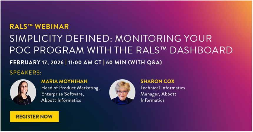 Point-of-care (POC) testing runs 24×7, but do you have daily visibility into the health of your POC program? Join next week's RALS webinar to discover how the RALS™ dashboard streamlined oversight and lowered costs for a university health system.