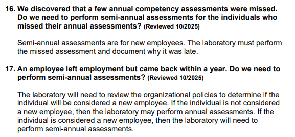 I asked this question to him because I was taught to reset the competency assessment period if the end user was away for a long time which made sense; if you haven't used a device for a long time, can you trust them to remember what they were taught.